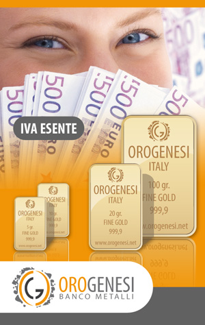Novità: Oro da Investimento In un momento come questo in cui le quotazioni sono in flessione, l'acquisto di oro da investimento è divenuto particolarmente vantaggioso. Per soddisfare la crescente domanda di oro da investimento, la Orogenesi S.r.l banco metalli ha da tempo sviluppato una propria linea di lingotti con diverse grammature, acquistabili online sul sito www.orogenesi.net. Inoltre, sfruttando la capillarità della propria rete in franchising a marchio "a Peso d'Oro", Orogenesi offre al cliente la possibilità di ordinare e/o ritirare i prodotti direttamente in una delle sedi "a Peso d'Oro" eliminando i rischi tipici delle consegne a domicilio, come la mancata consegna del prodotto o peggio ancora la perdita o danneggiamento dello stesso. Recatevi in una delle nostre filiali e ritirate il materiale pubblicitario con tutte le informazioni sul nuovo servizio. |